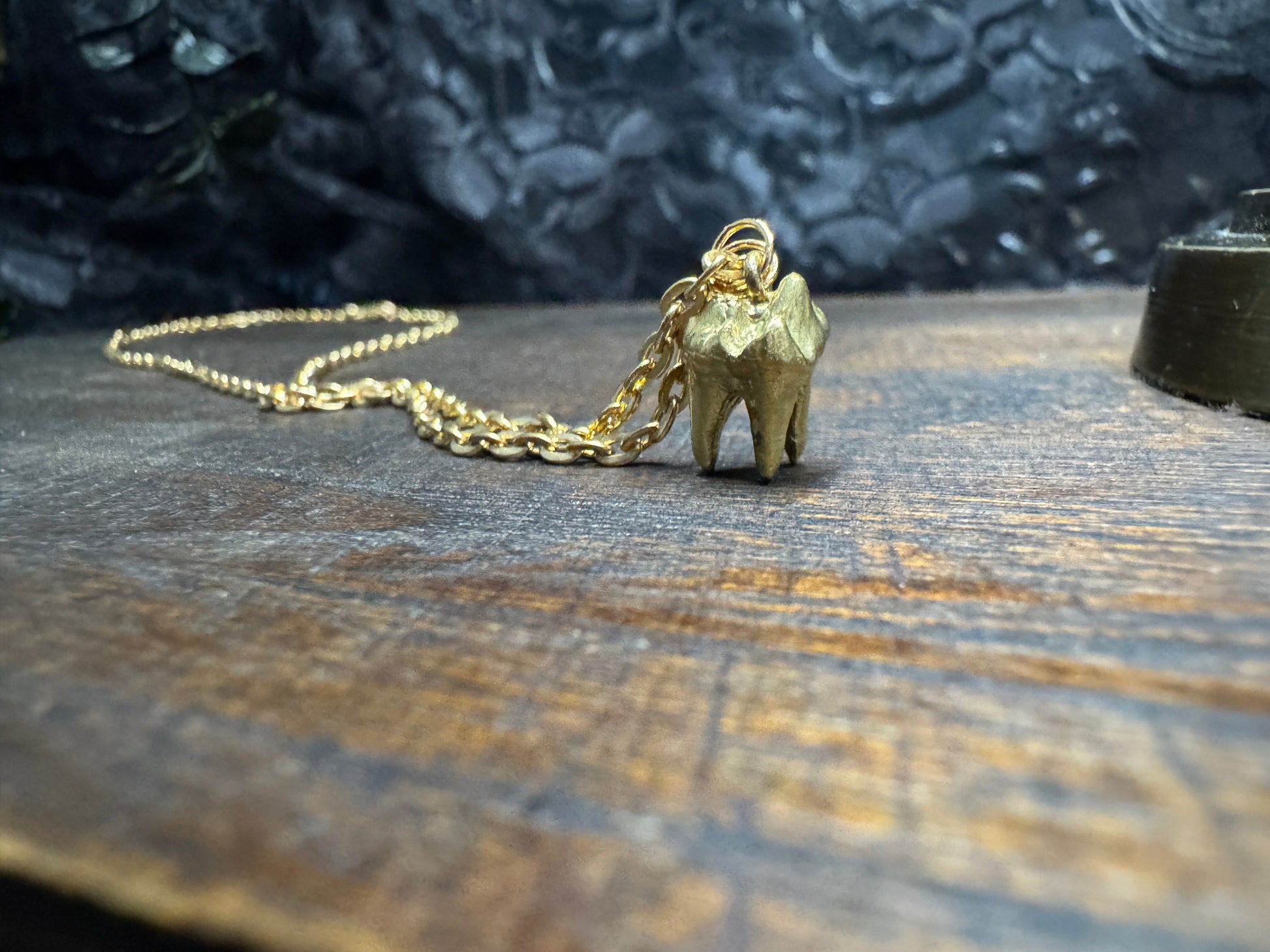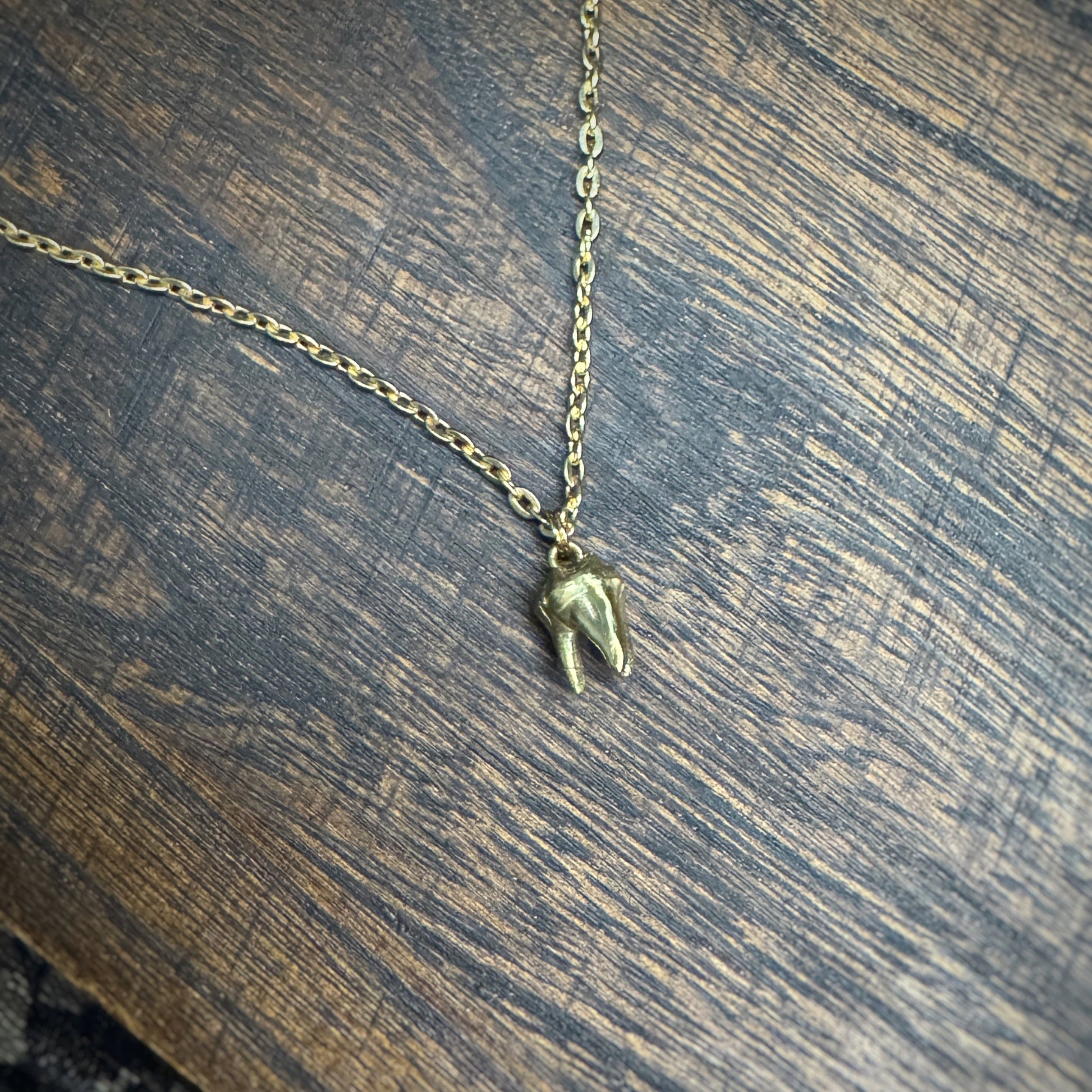 • Tooth is cast in brass from a real tooth and measures around 8mm wide and 11mm long.