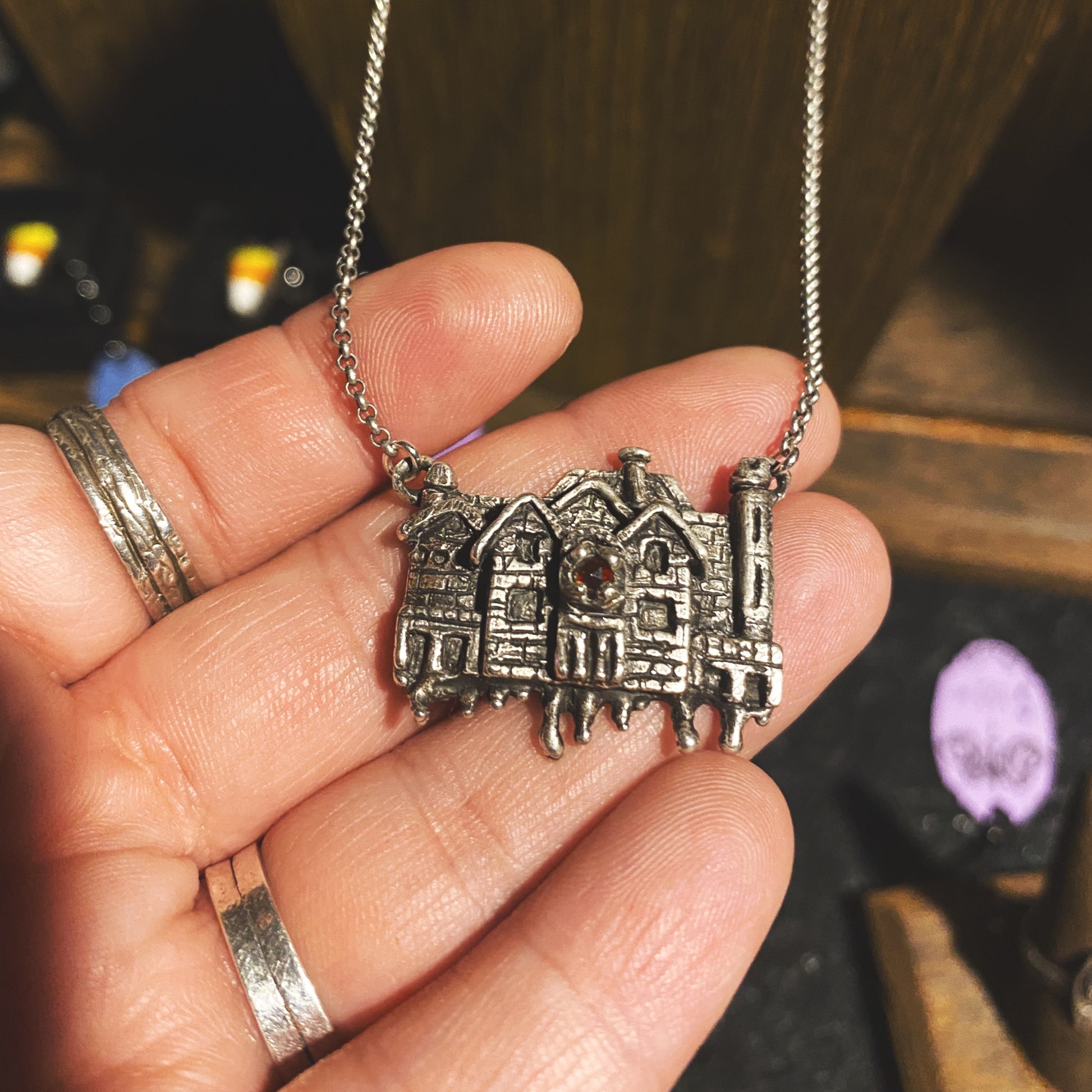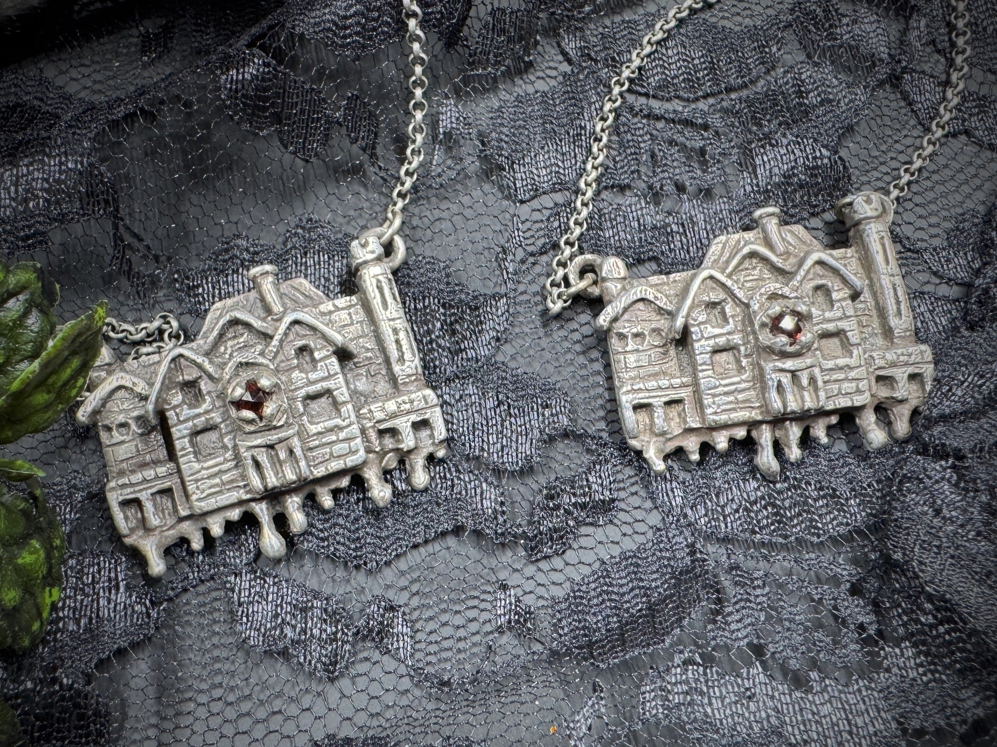- A lot of love went into this pendant; it was carved by hand over the course of an entire year. The attention to detail is clear if you take a close look, tiny bricks and windows adorn the house. The bottom has an oozing quality representing the darkness of Hill House.