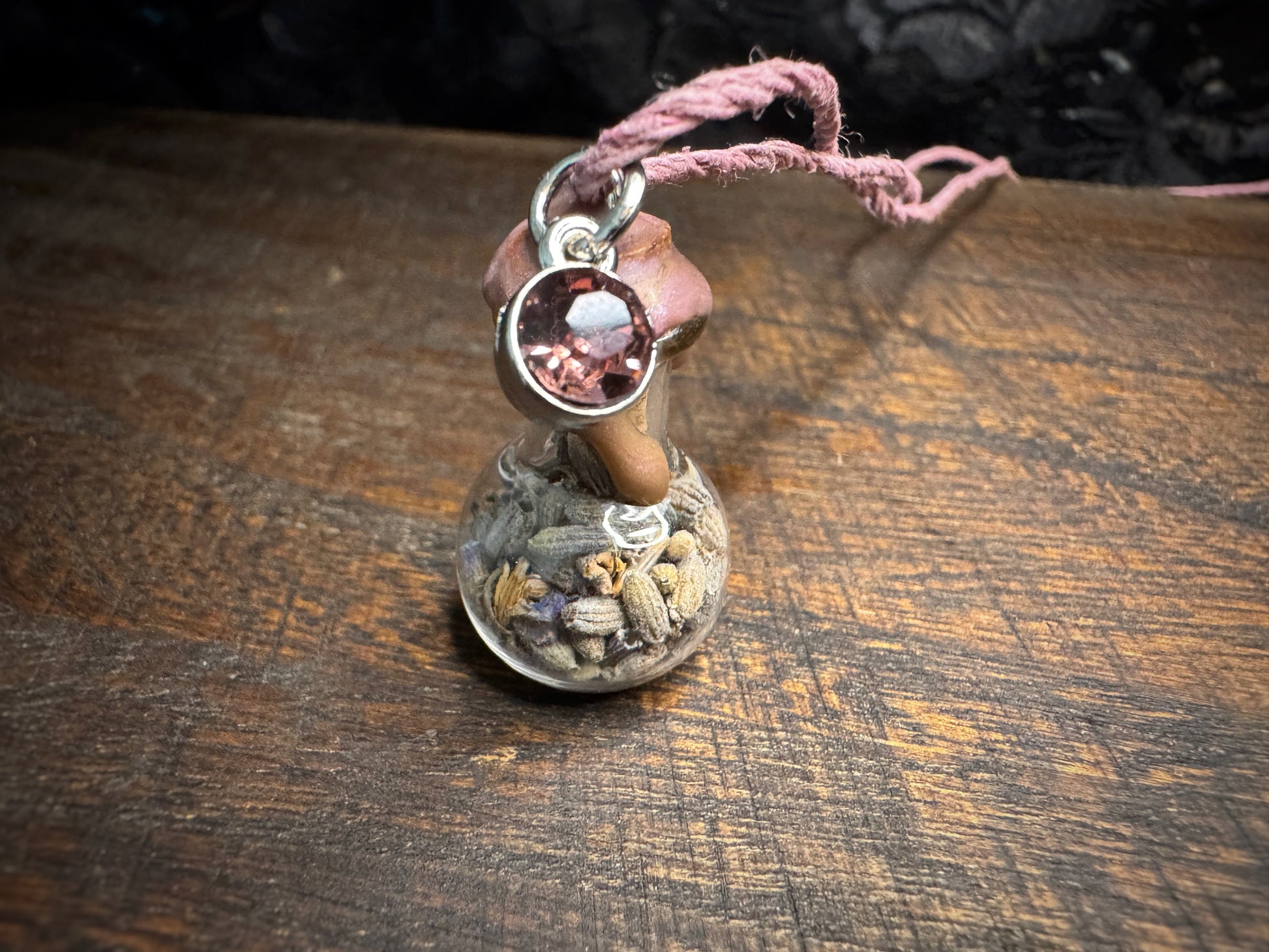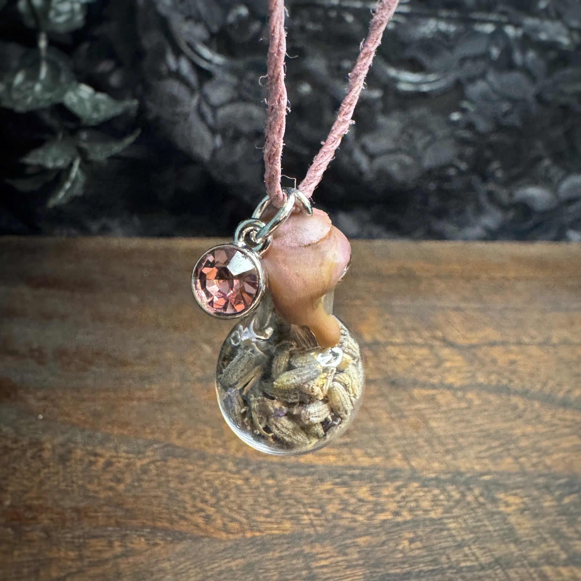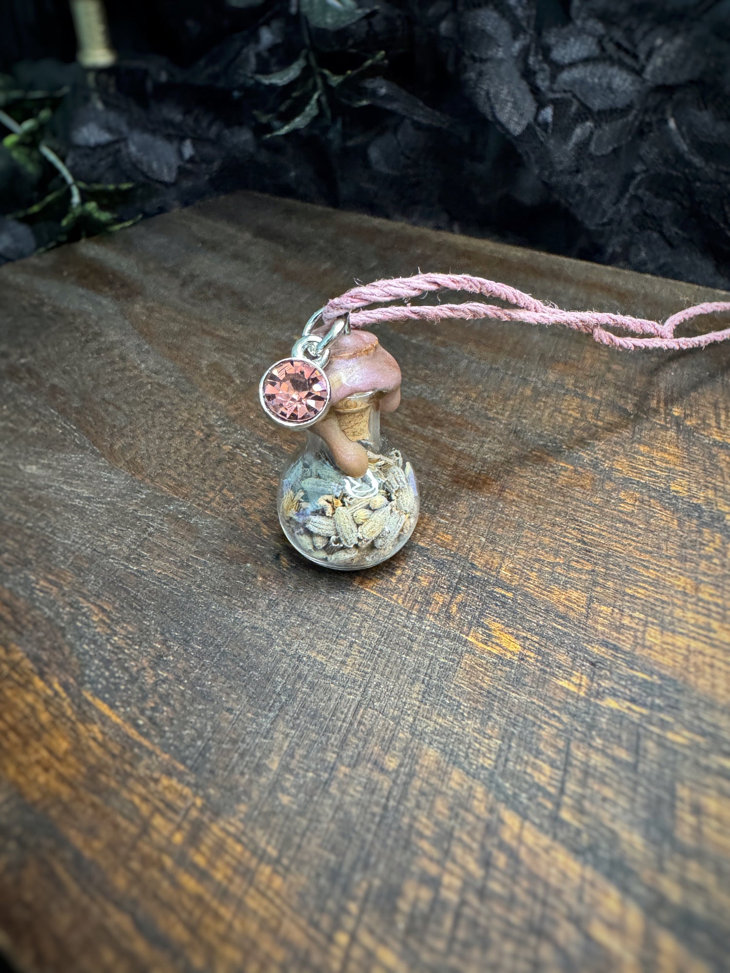 Please take certain precautions to protect the integrity of your jewelry! Do not submerge in water, swim, or bathe with it on as this can damage the jewelry - especially chlorine or salt water. Everyday outdoor and daytime wear is perfectly normal but please do not leave in the sun (on a windowsill for example) for extended periods of time as this could weaken the wax seal or the color of the herbs and cord to fade. When not being worn, wrap in a cloth or its accompanying jewelry box to protect. For more info and instructions, please read through the FAQ page for frequently asked questions and policies before making your purchase.