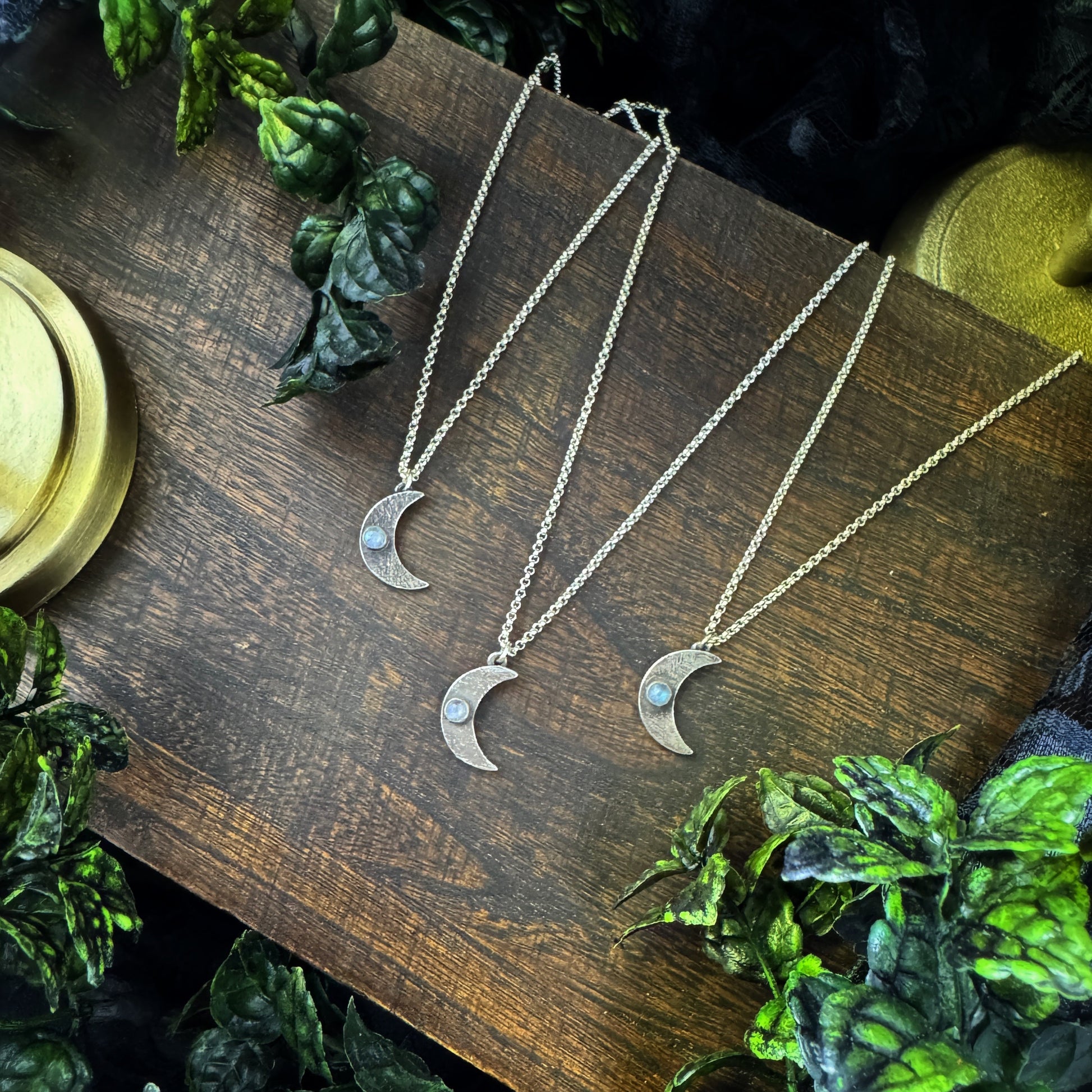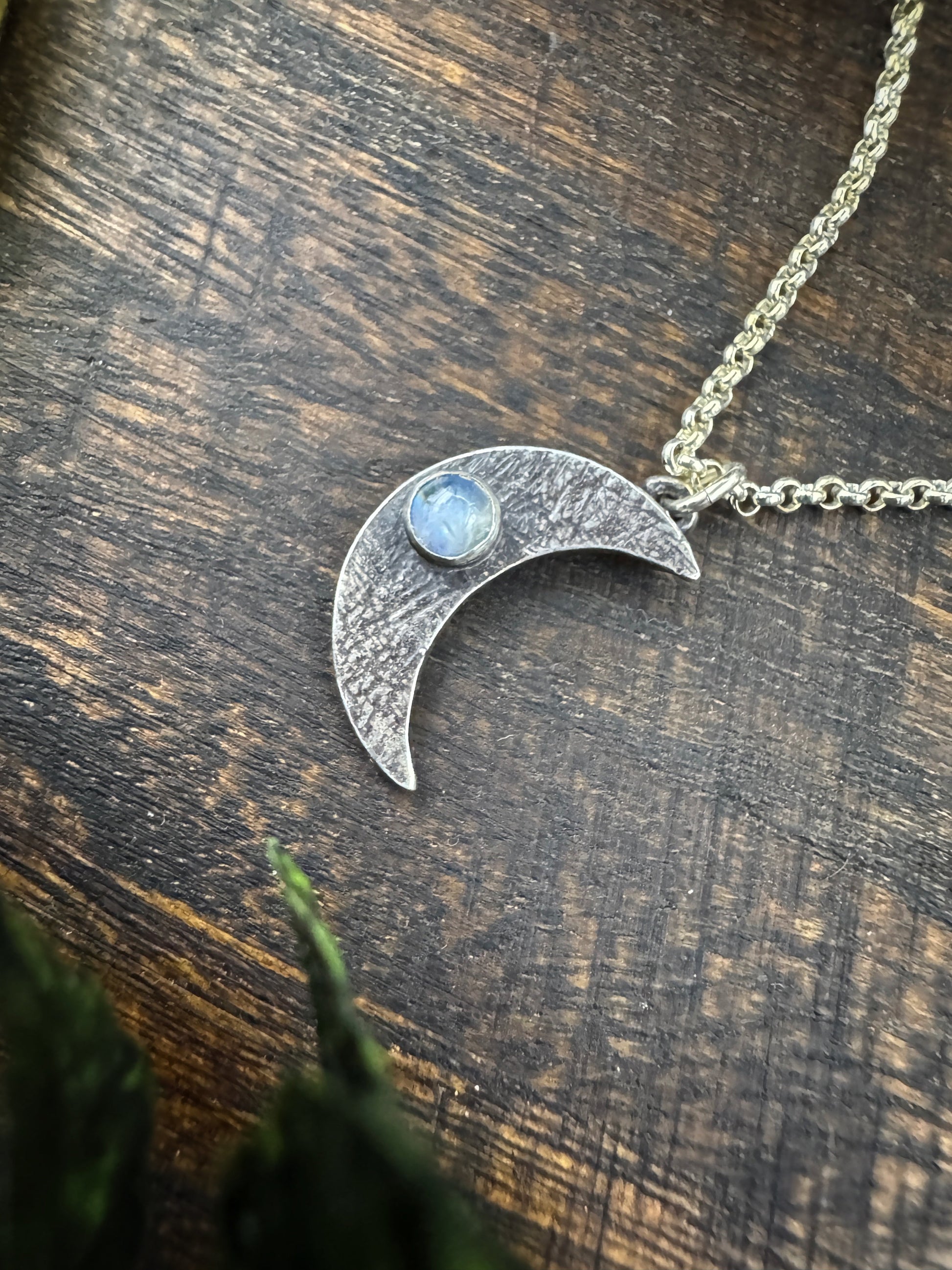Mini Moon with Rainbow Moonstone in Sterling Silver