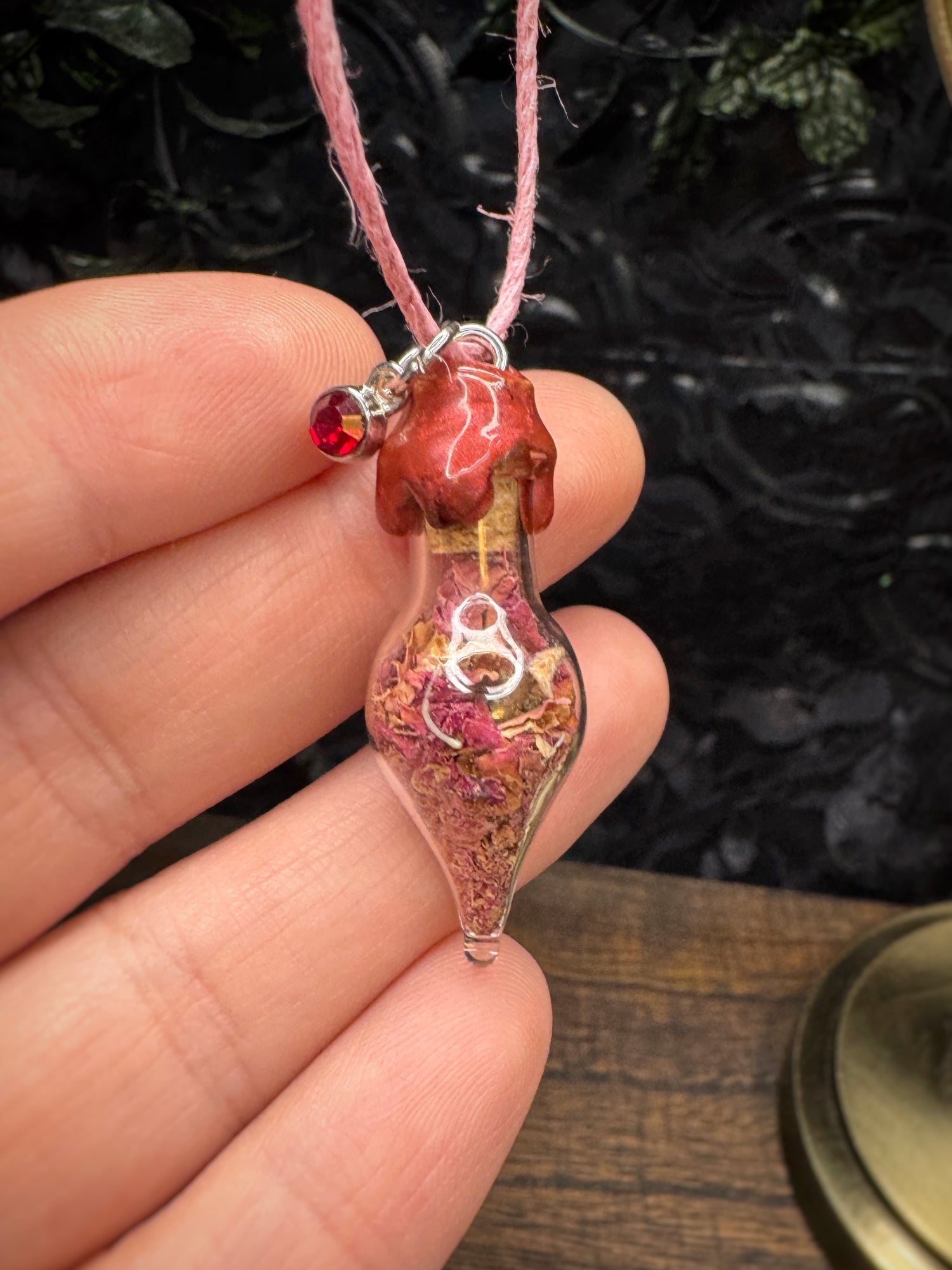Please take certain precautions to protect the integrity of your jewelry! Do not submerge in water, swim, or bathe with it on as this can damage the jewelry - especially chlorine or salt water. Everyday outdoor and daytime wear is perfectly normal but please do not leave in the sun (on a windowsill for example) for extended periods of time as this could weaken the wax seal or the color of the herbs and cord to fade. When not being worn, wrap in a cloth or its accompanying jewelry box to protect. For more info and instructions, please read through the FAQ page for frequently asked questions and policies before making your purchase.
