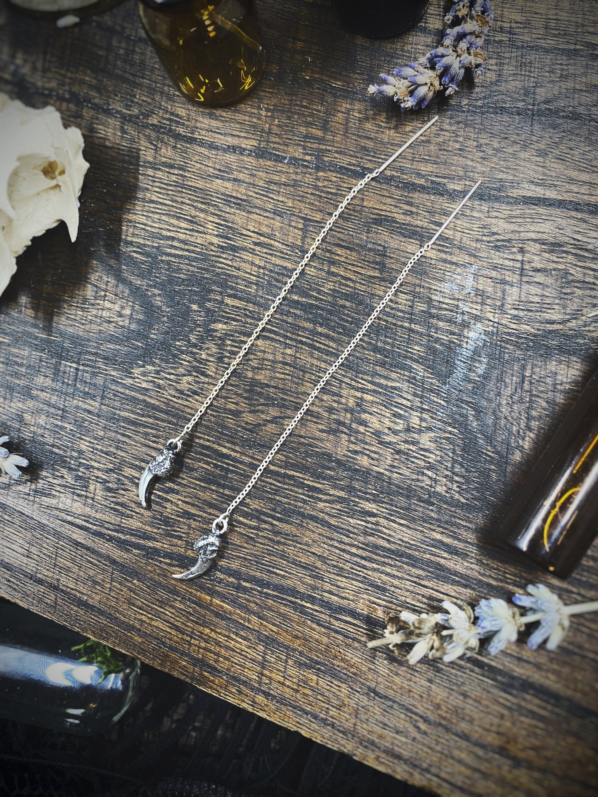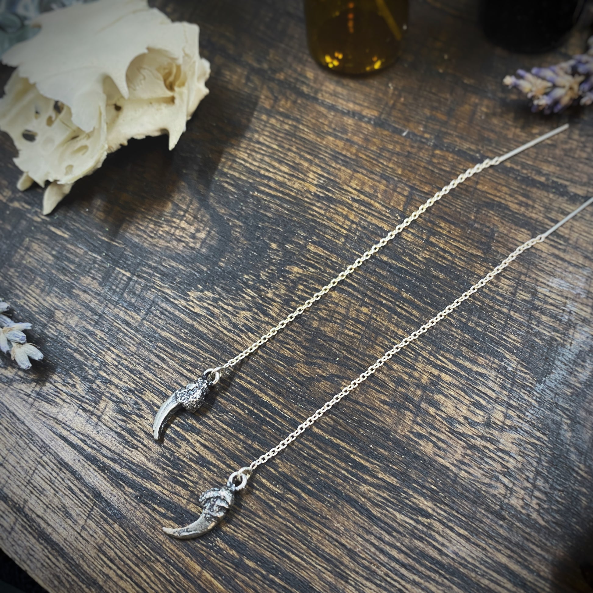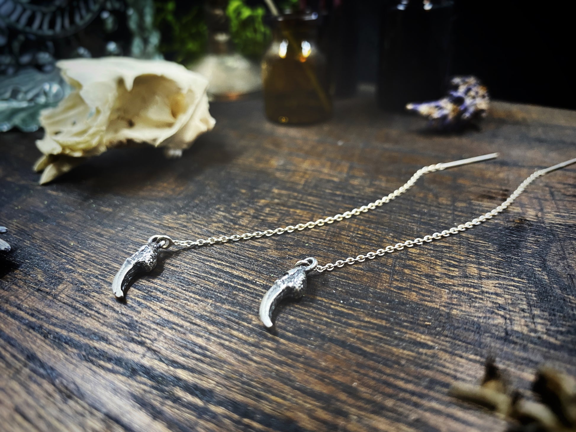 • Two small crow talons cast in silver and hanging from dainty silver chain.