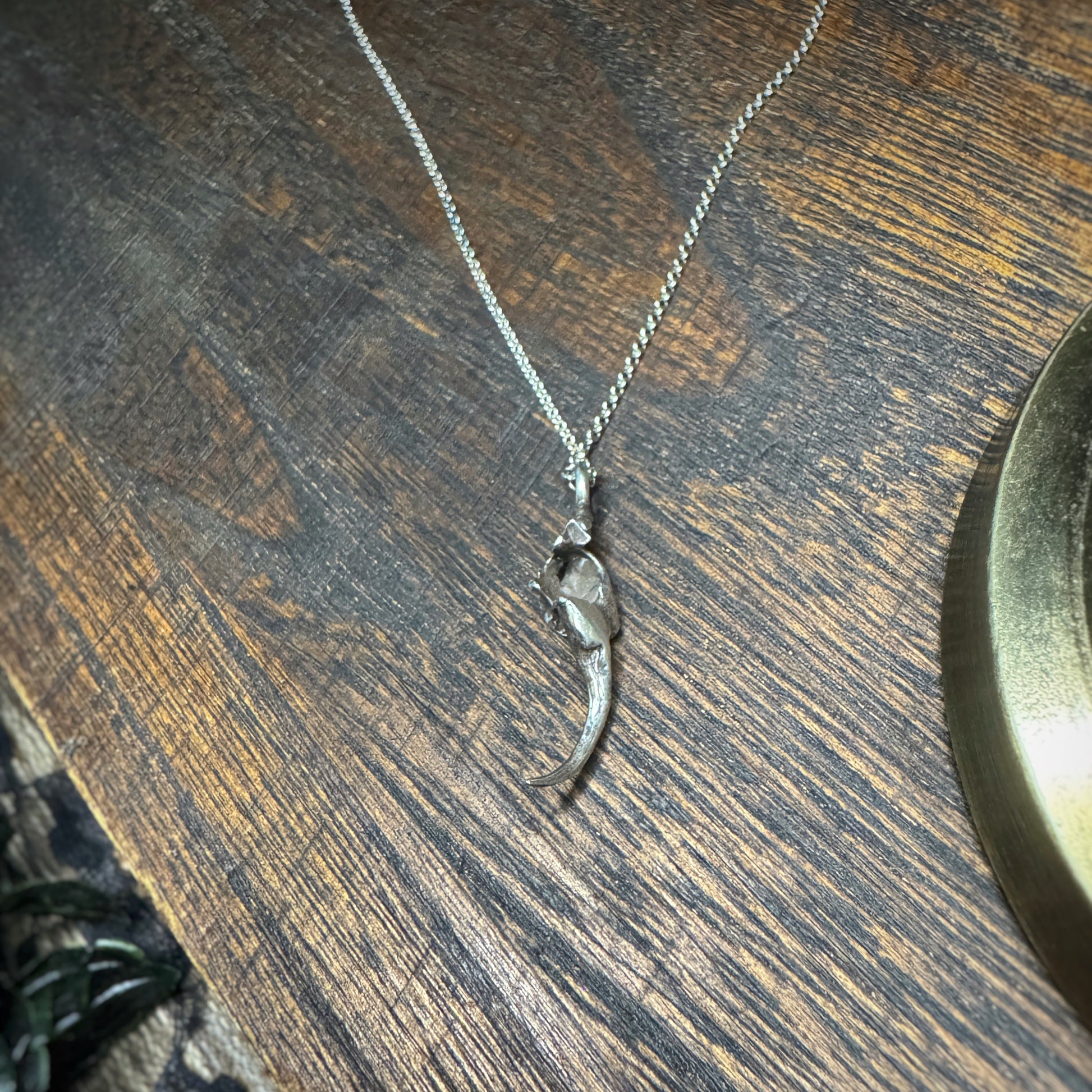 - A real snake fang molded and cast in silver using the lost wax casting method.