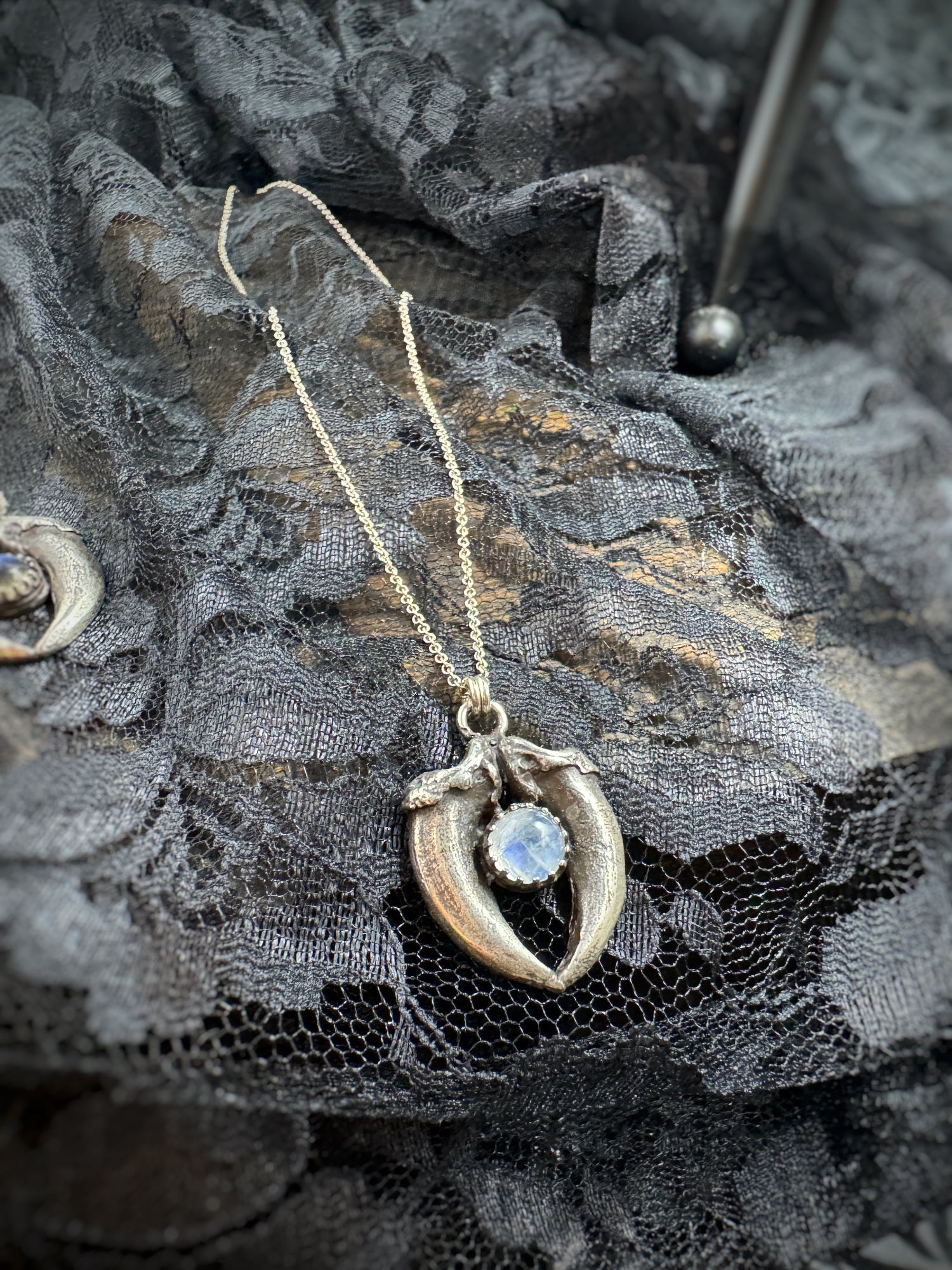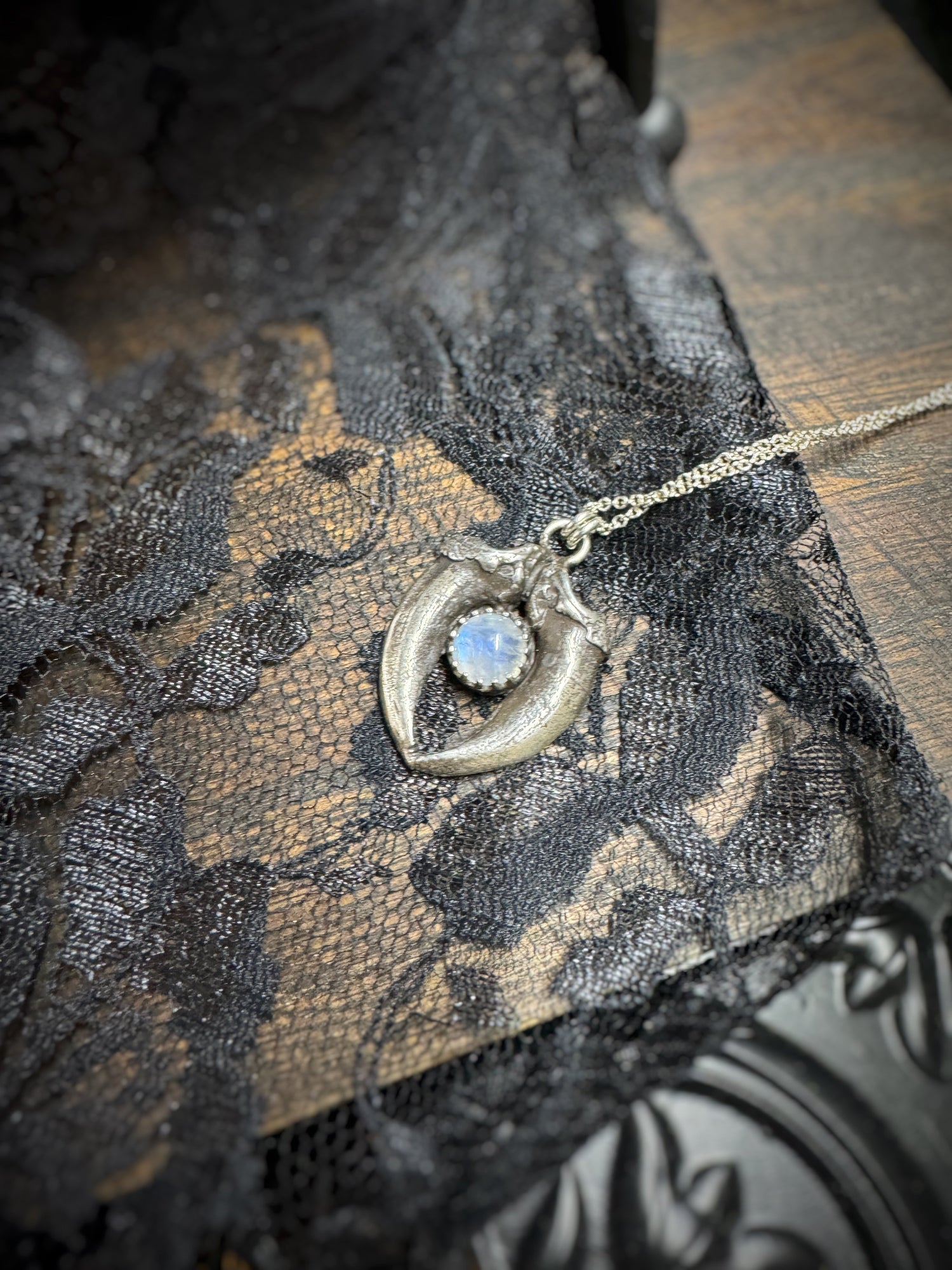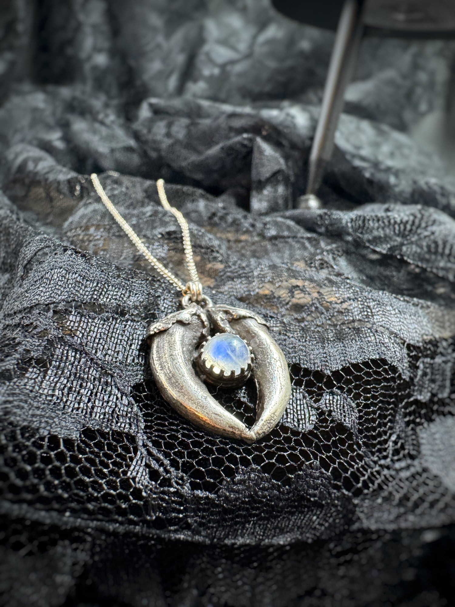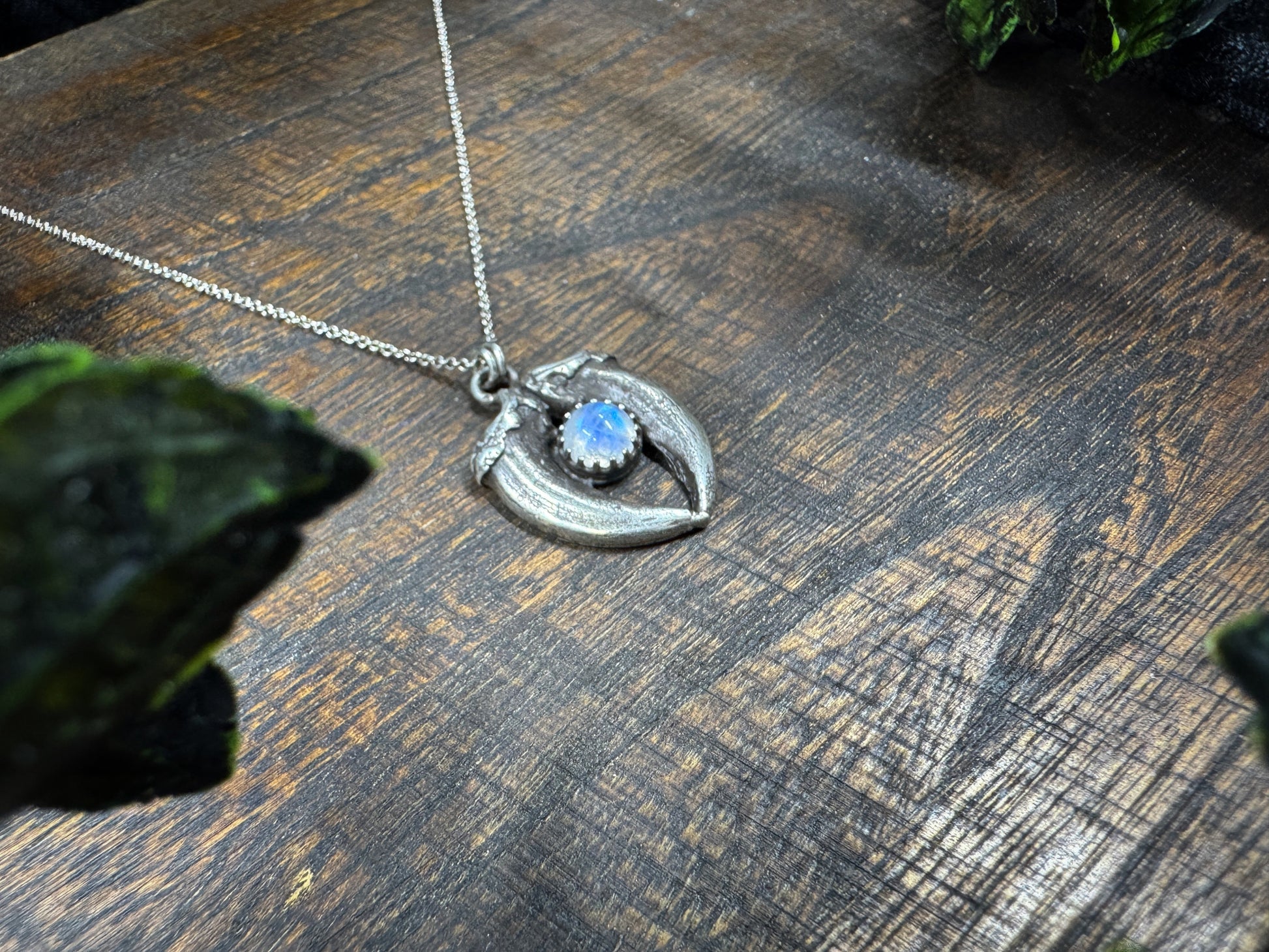 Sterling Silver Coyote Claw and Rainbow Moonstone Necklace